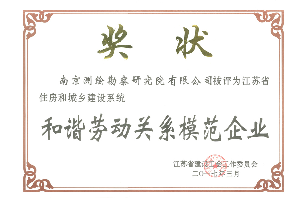 江蘇省住房和城鄉(xiāng)建設(shè)系統(tǒng)和諧勞動(dòng)關(guān)系模范企業(yè)